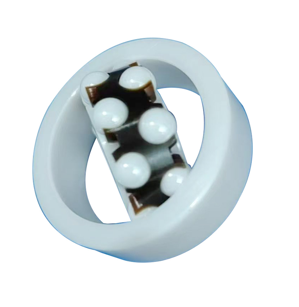 全陶瓷轴承具抗磁抗电绝缘、耐磨耐腐蚀、无油自润滑、耐高温耐高寒等特点,可用于极度恶劣环境及特殊工况。套圈及滚动体采用氧化锆(Zr02)材料,保持器使用聚四氟乙烯(PTFE)作为标准配置,一般也可使用玻璃纤维增强的尼龙66(GRPA66-25),特种工程塑料(PEEK,PI),不锈钢(AISI SUS316、SUS304),黄铜(Cu)等